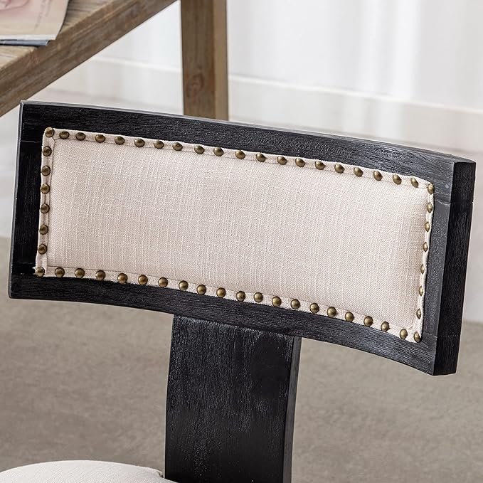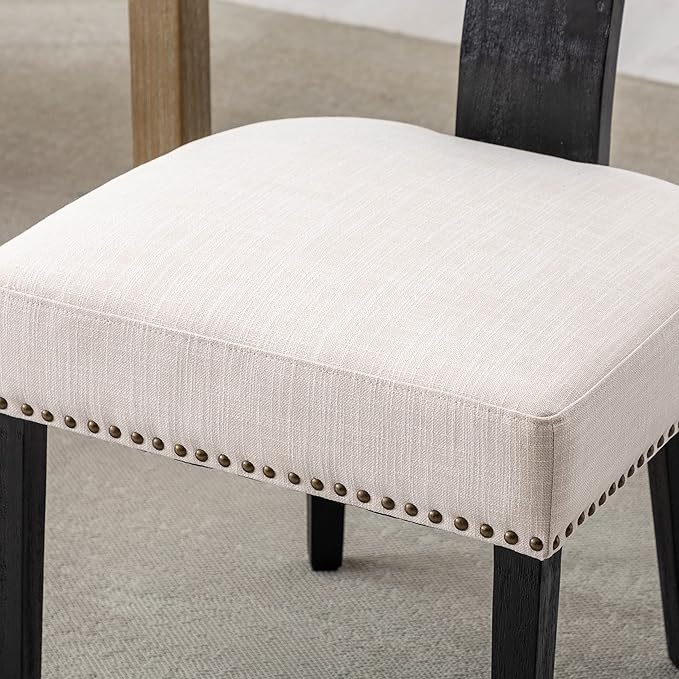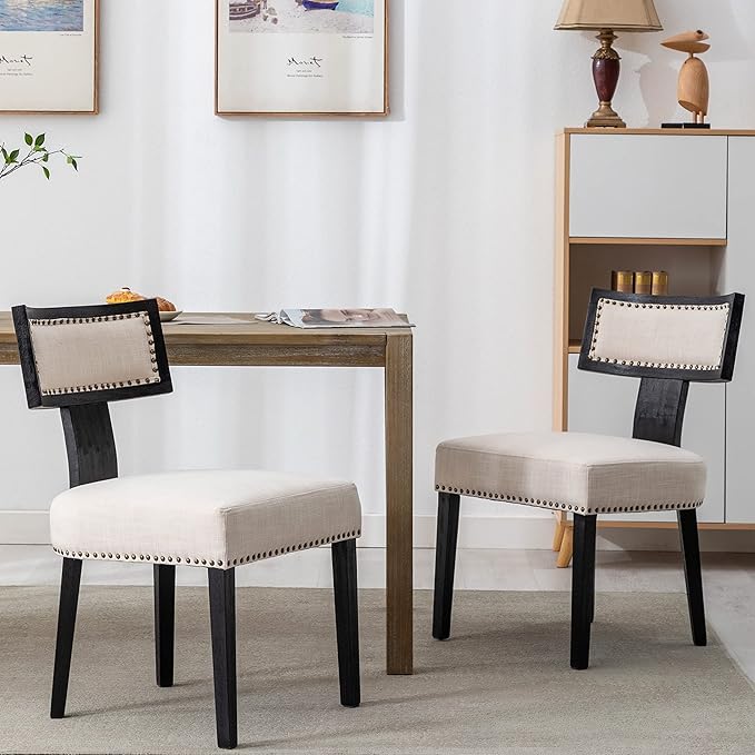 Mid Century Modern Dining Chairs Set of 2 Linen Fabric Upholstered Kitchen Side Chairs with Nailhead Trim, Modern Kitchen Armless Solid Wood Dining Chairs, Beige
