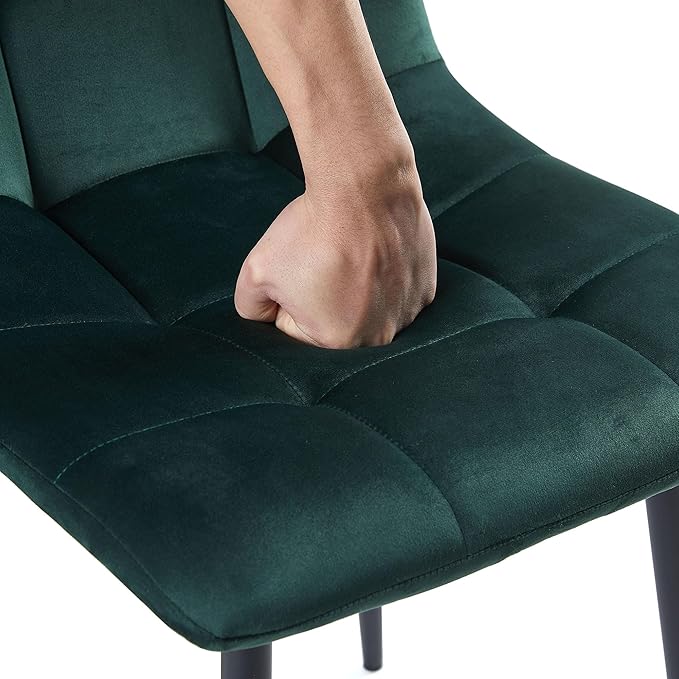 NORDICANA Forest Green Velvet Dinner Chairs Set of 4, Modern Armless Biscuit Tufted Dining Side Chairs with Metal Legs for Kitchen Living Room Vanity
