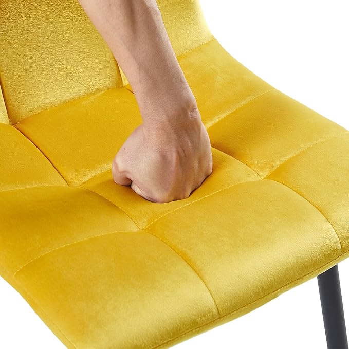 NORDICANA Yellow Velvet Dinner Chairs Set of 4, Modern Armless Biscuit Tufted Dining Side Chairs with Metal Legs for Kitchen Living Room Vanity