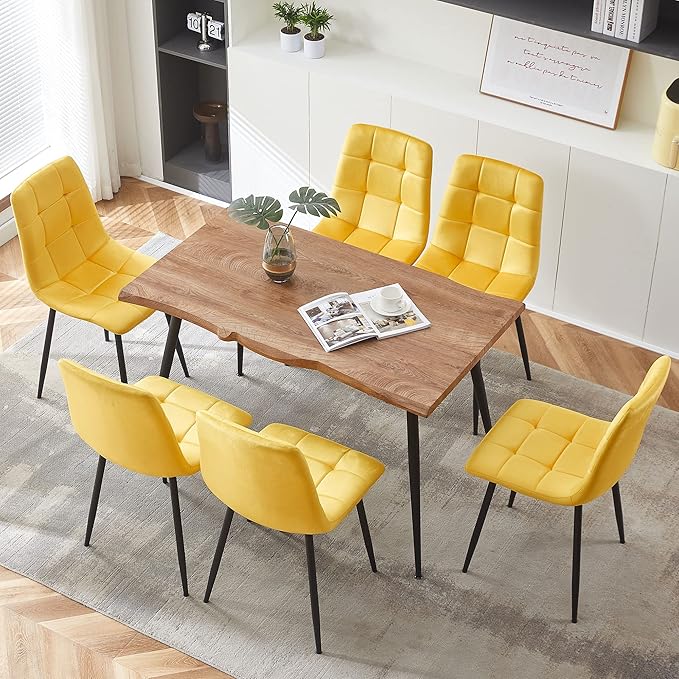 NORDICANA Yellow Velvet Dinner Chairs Set of 6, Modern Armless Biscuit Tufted Dining Side Chairs with Metal Legs for Kitchen Living Room Vanity