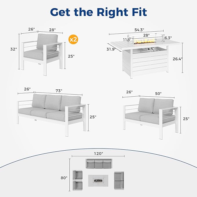- 【EASY TO ASSEMBLE & MAINTAIN】Our outside patio furniture comes with simple instructions and handy tools to easily get you up and running. Owning to its features of rust-, heat-, and moisture-resistance, it is unfazed by whatever nature throws its way. It also has an included fire pit table cover so you don't have to worry about the patio sets being affected by outdoor elements.