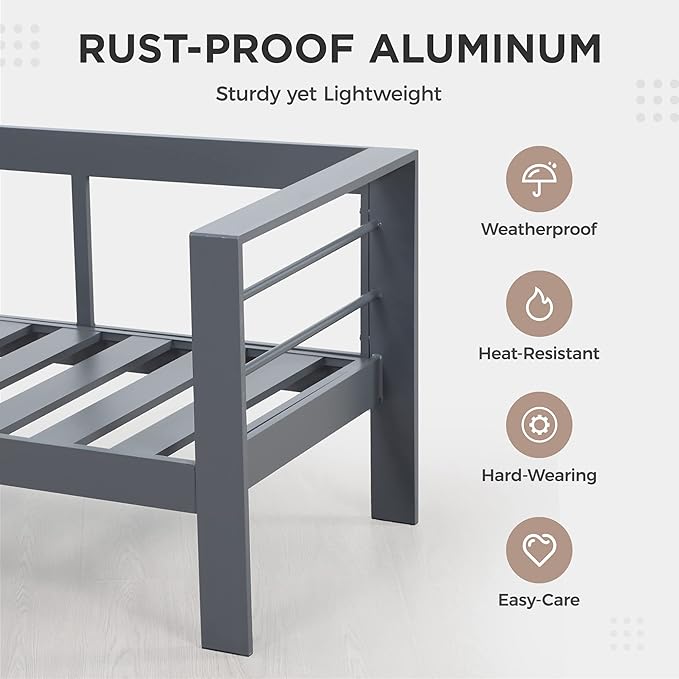 - 【ALUMINUM PATIO FURNITURE SET】In addition to its modern visual appeal, it’s standing out in fine techniques such as a thick gauge aluminum frame and richly powder-coated finish, which distinguishes our outdoor patio furniture from other metal furniture. The lighter-weight patio furniture is crafted to stand the test of time without fading, molding or rusting.