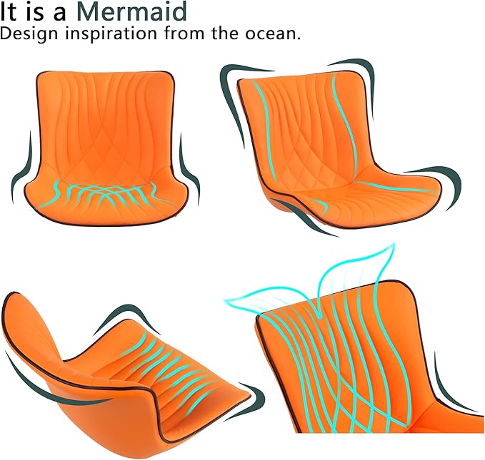YOUTASTE Dining Chairs Set of 2, Mid Century Modern Upholstered Faux Leather Kitchen Room Chairs, with Black Metal Legs, Armless Accent Chair for Living Room, Bedroom, Vanity, Orange