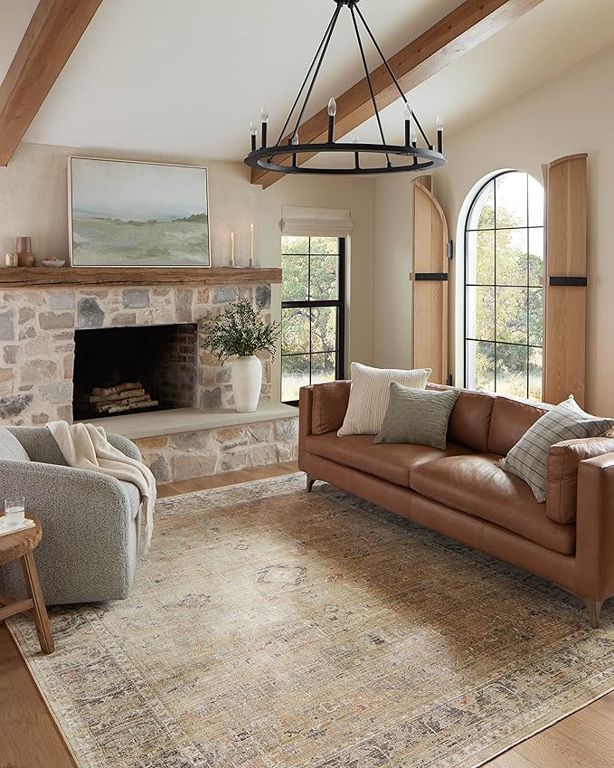 Loloi Magnolia Home by Joanna Gaines Millie Collection MIE-03 Gold/Charcoal 2'-3" x 3'-10", .25" Pile Height, Accent Rug