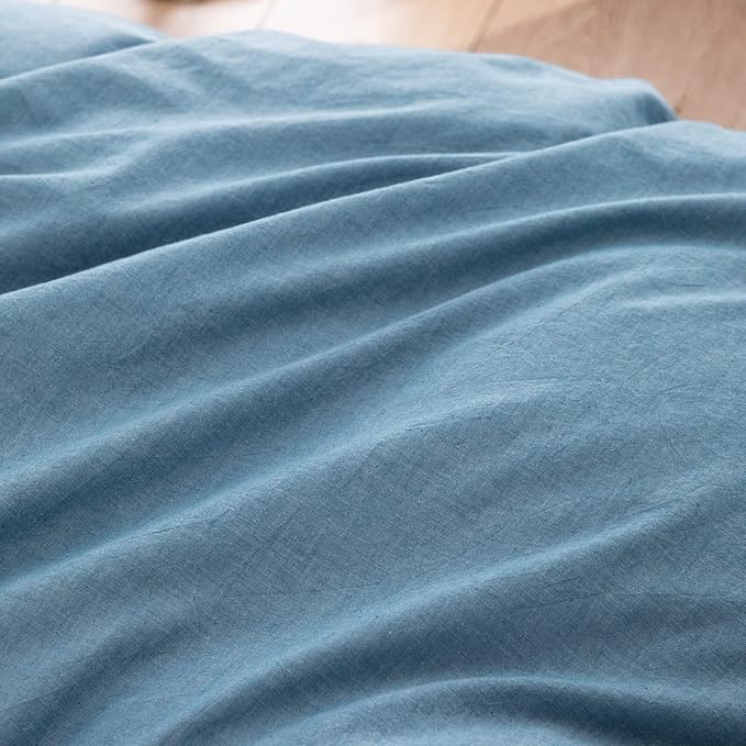 - Material: 100% washed cotton, slightly wrinkled look, great linen feel. If you want a linen style bedding, this duvet cover set is beautiful and perfect! The fabric is so soft yet with a very light crispness to it, even after washing, and it will get softer with each wash. It's like sleeping in a cloud.