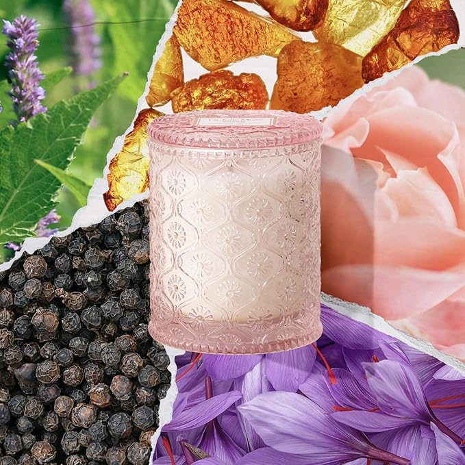 - Santal Rosé: Lush rose blossom meets the earthy sandalwood base, together offering you a soft, powdery floral aroma. Feels like wandering in a serene garden at dawn, this rose candle delicately balance the intoxicating scent of fresh blooms with the grounding woody base.
