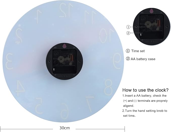 - High Quality: The tempered glass dial, metal hands and precise quartz movement make our clock work longer. After you install it on the wall, it will run fluently.