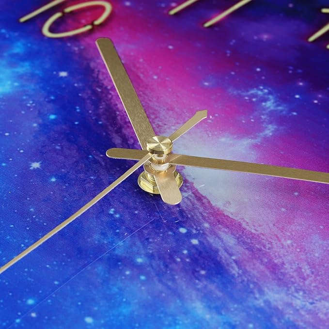 - Novelty & Unique Design: This artistic clock is inspired by the romantic and mysterious galaxy. The golden Arabic numbers and clock hands and bright colorful dial will easily attract people's attention.