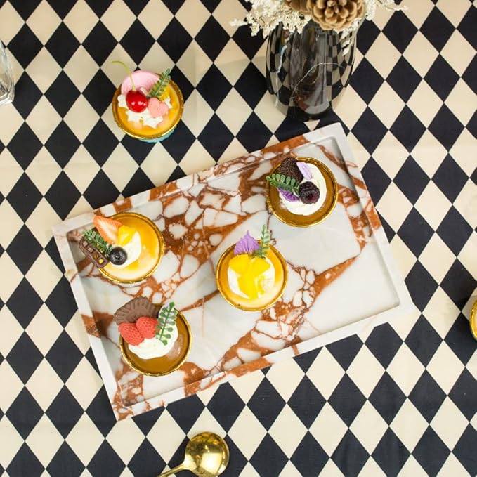 - 【MULTIPLE PURPOSE –ELEGANT DECORATION】Using the marble tray for the kitchen, bedroom, vanity countertop, bathroom, linen closet, and bedside table to keep your daily life more convenient and elegant.