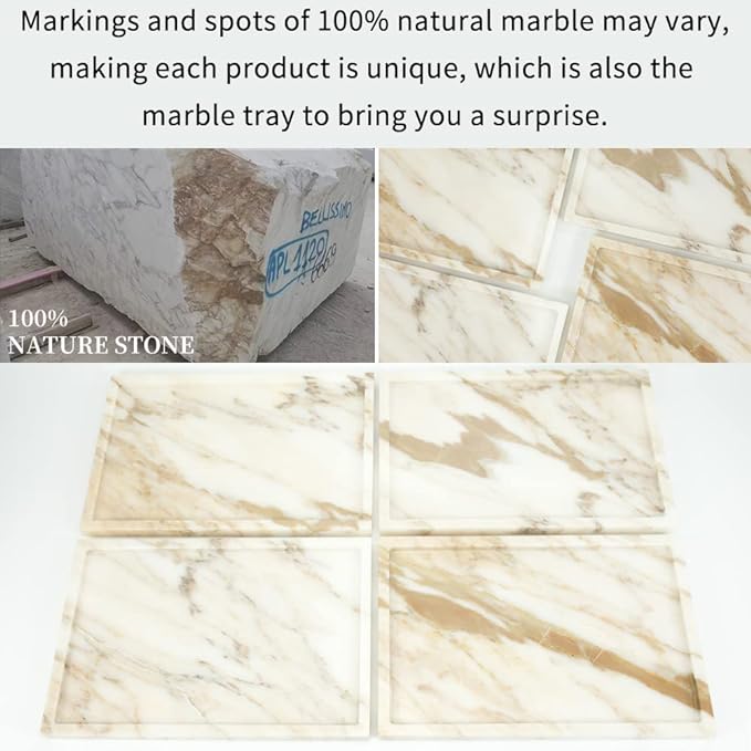 - 【EASY TO MAINTAIN】The marble tray is waterproof, oil-proof, and Scratch Resistance. The polished finish protects makes it shiny and easy to clean. If dust is attached to the surface, gently wipe it with wet wipes.