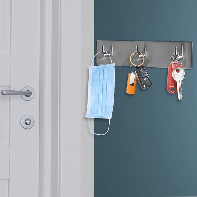 Picowe Key Holder for Wall Decorative, Adhesive Stainless Steel Key Hooks, Key Hanger Key Organizer for Wall, Towel Hook Coat Hanger for Entryway Hallway Kitchen(Three Rows,Sliver 1PCS)
