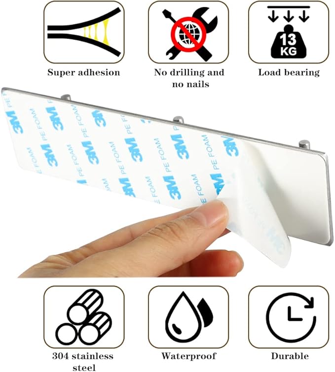 - Strong Self-adhesive Tape. Installation is very convenient, just tear off the sticker on the back, and then paste it directly behind the wall or door. Compared with hooks that need to be punched, adhesive is convenient and quick, and will not damage the wall. Pls. note that itβs only suitable for smooth walls, such as Wood, tiles, ceramics, metal, plastic, etc. Not suit for painted walls or peeling latex paint walls.