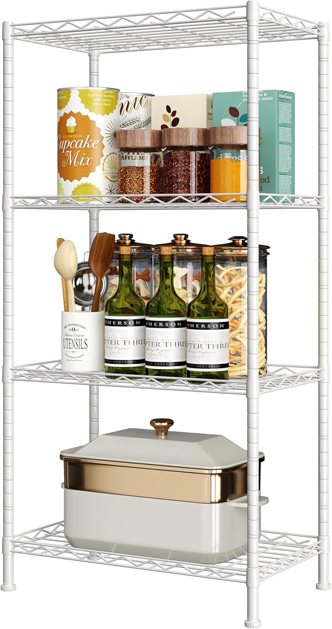 HOMEFORT 4-Shelving Unit, Adjustable Wire Shelving, Metal Wire Shelf Rack Organizer for Kitchen, Pantry, Closet, Bathroom, Laundry, White,21" W x 11" D x 41" H