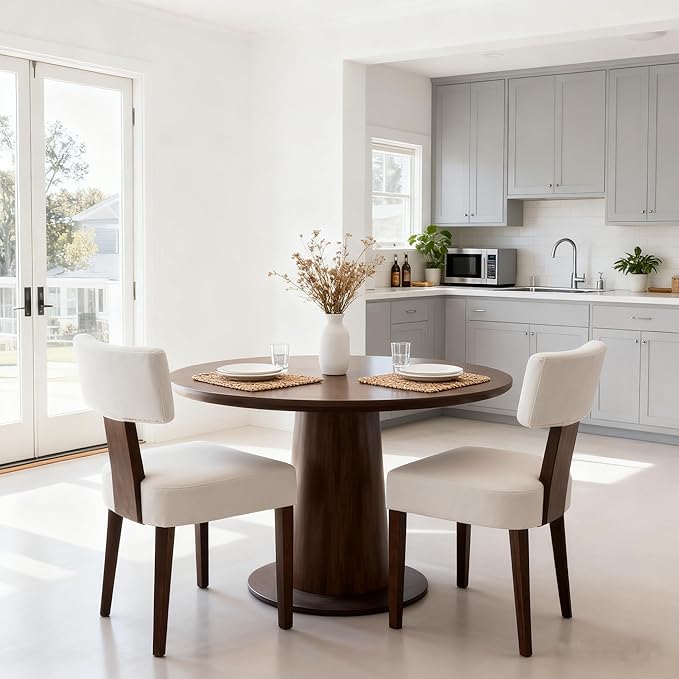 Upholstered Dining Chairs Set of 2, Modern Wooden Kitchen Chairs Fabric Side Dining Room Chair Farmhouse Dinner Chair for Kitchen Dining Room, Cream