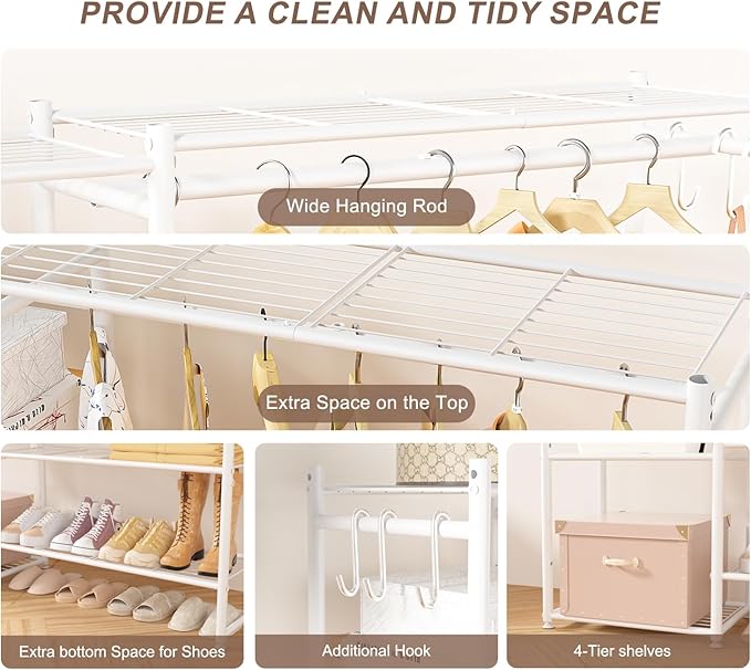 - 【100% Satisfaction】If any problems with the clothing rack with shelves, don't hesitate to contact us. We replace or refund any defective products.