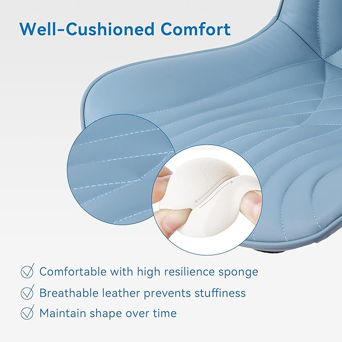 YOUNIKE Office Chair, Adjustable Swivel Armless Desk Chair with Wheels, Aesthetic Home Office Computer Task Chairs, Modern Faux Leather Upholstered Vanity Chair with Back, Blue