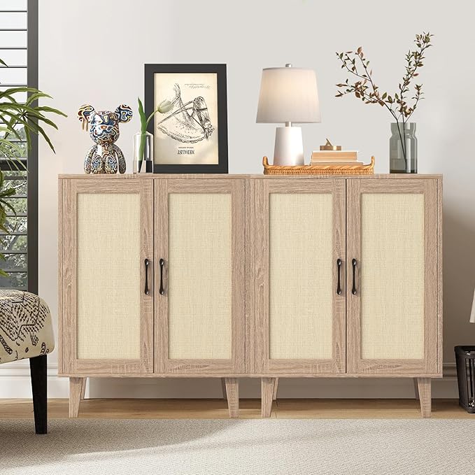 - Rattan Decorated Design: This stylish buffet cabinet sideboard features a unique rattan decorated 2-door design, effortlessly adding a touch of sophistication and charm to your kitchen or dining area.