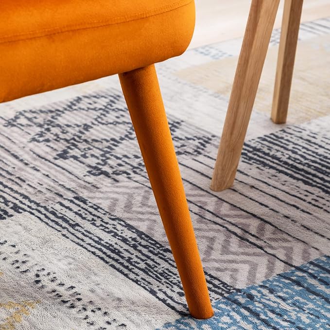 Velvet Dining Chairs Set of 2 Modern Living Room Chairs with Petal Back & Wood Legs Comfy Upholstered Side Chair for Dining Room/Bedroom/Vanity, Orange