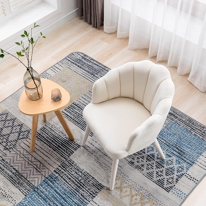 - [ELEGANT & CUTE DESIGN] Featured with semi-enclosed petal backrest and soft velvet fabric, this modern designed dining chair looks beautiful and fashionable. The pleasing appearance can decorate your indoor decor well, adding a stylish and cute atmosphere to your home