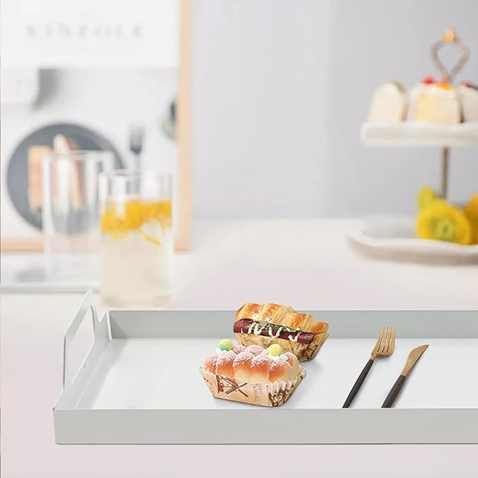 VANRA Metal Serving Tray Portable Bed Tray with Handles for Coffee Table, Living Room, Kitchen and Bathroom (White)