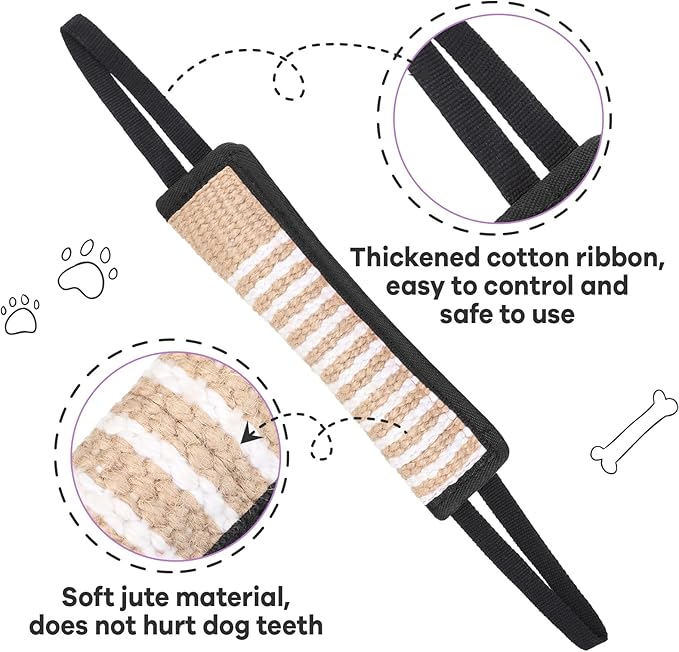 - Suitable Size: each jute toy is about 11.81 x 3.15 inches and has 2 sturdy handles, providing you with additional options for hand placement and a safe and comfortable grip; The handle adopts thickened textile strap material, strong and safe to use, prevents your hands from being burned or cut by the rope