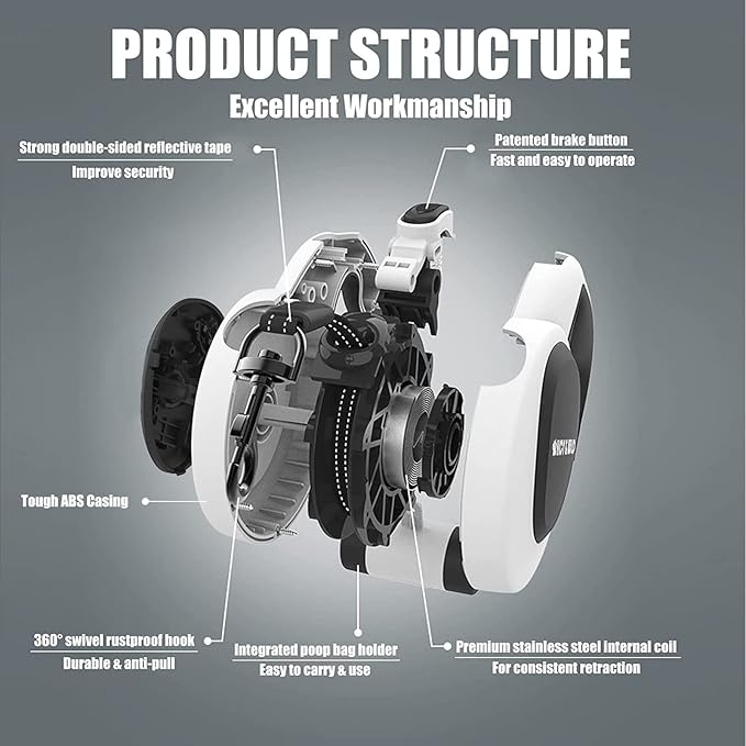 - 🐕【16FT/5M Heavy Duty Retractable Dog Leash】16FT/5M high-strength tensile and wear-resistant nylon tape with durable rustproof swivel hook. Premium stainless steel internal coil for consistent retraction. Sturdy ABS shell, more durable and last longer. Suitable for dogs up to 110 lbs.