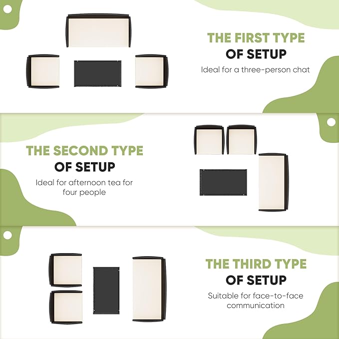 - Widely Used: Because of its combination design, it is composed two single seat, a loveseat and a glass coffee table, these components make the set can be used in many occasions such poolside, backyard or garden.