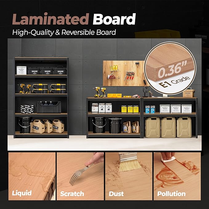 HOMEDANT House 5 Tier Laminated Metal Shelving Unit Adjustable Storage Utility Rack Heavy Duty Shelves Organization Multipurpose Shelf Kitchen Garage Pantry Closet (3, (L) 48.1" W, Black)