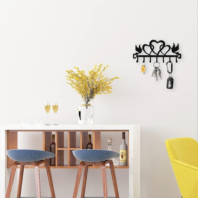 - Quality Assured: Our key organizer is made from steel and is Black powder coated so as to resist corrosion. The family and love hook design is perfect to match any style of décor.