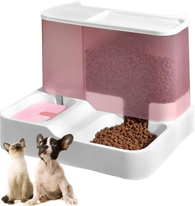 kathson All-in-One Automatic Cat Feeder and Water Dispenser Set Gravity Cat Food and Water Bowl Set Automatic Pet Feeder and Water Dispenser for Small Dogs Puppy Cats Pets(Pink)