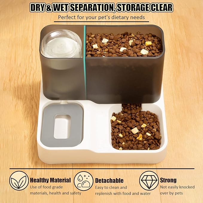 - 【More Practical 2-in-1 Design】This pet feeder and water dispenser set with 2-in-1 design is a more practical solution for pet owners who want to provide food and water for their pets at the same time, saving space, time and energy. Including a 1-liter water dispenser and a 2.8-liter food dispenser, you no longer need to prepare multiple cat food dispensers, great for feeding cats, dogs and other pets.