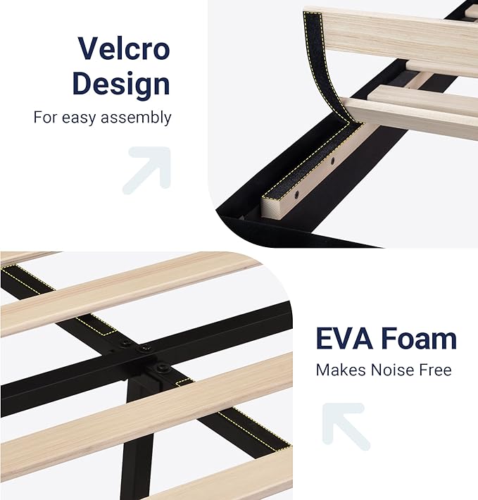 - No Box Spring Needed: Designed with solid wood slats and simple assembly; mattress does not slide; suitable for memory foam or spring mattresses without a box spring
