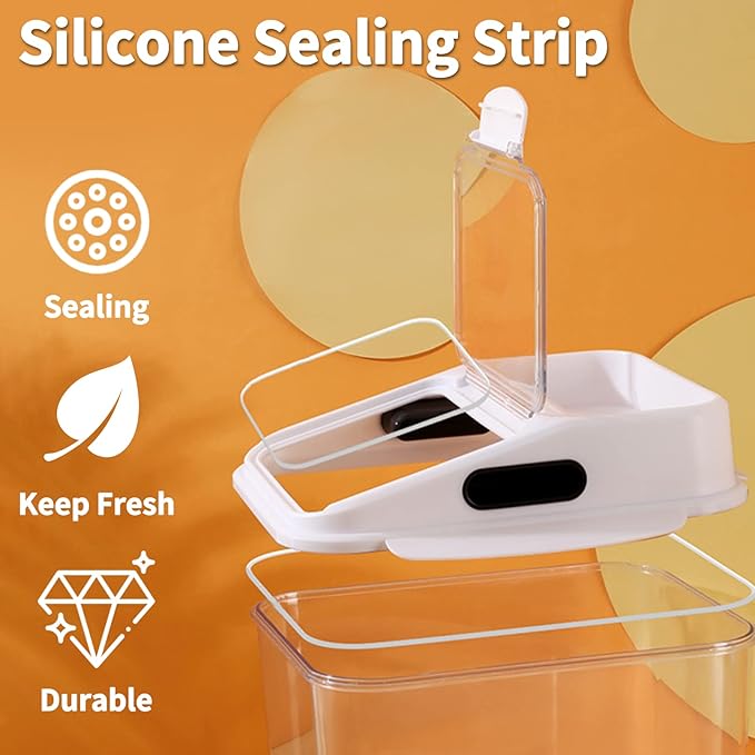 - Airtight Seal: The lid of the pet food container seams use double silicone seals; the lid of the airtight pet food container has 4 seal buckles to keep out moisture which keeps the food fresh and dry for a long time