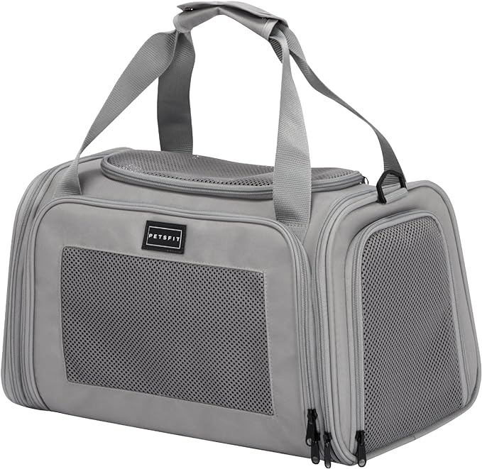 PETSFIT Cat Carrier Airline Approved, Soft Carrier for Small and Medium Cats Under 12 Lbs, Soft Cat Travel Bag, Kitten Carrier with Extendable Mat, Grey