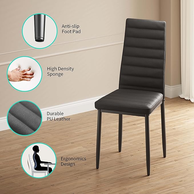 - Well-Designed Seating: The 4-person dining set includes a dining table and 4 cushioned chairs with a streamlined backrest that fits the natural curve of your spine. The seat is padded with soft foam and covered with PU leather, providing a comfortable and supportive experience so you can enjoy every meal.