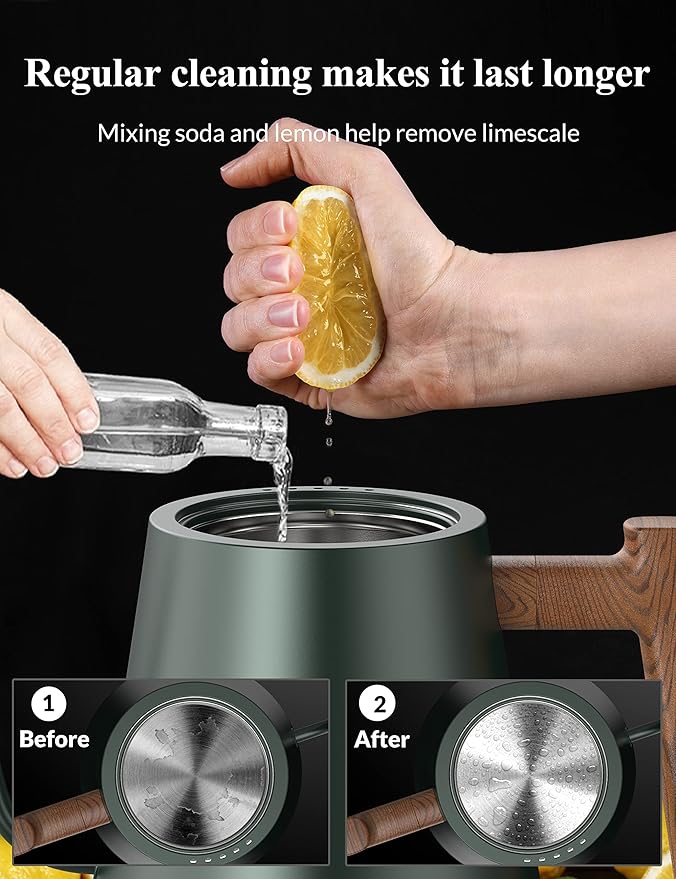 • THE PURE TASTE: This gooseneck electric kettle's durable interior, lid, and spout are crafted from food-grade 304 stainless steel, BPA-free, and rust-free