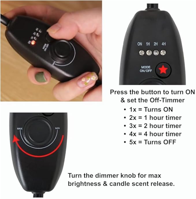- ✅ TIMER & BRIGHTNESS KNOB - The perfect feature combination for when you're heading out for the day or dozing off to sleep. Adjust the brightness to your liking. Set the OFF-Timer to 1, 2 or 4 hours.