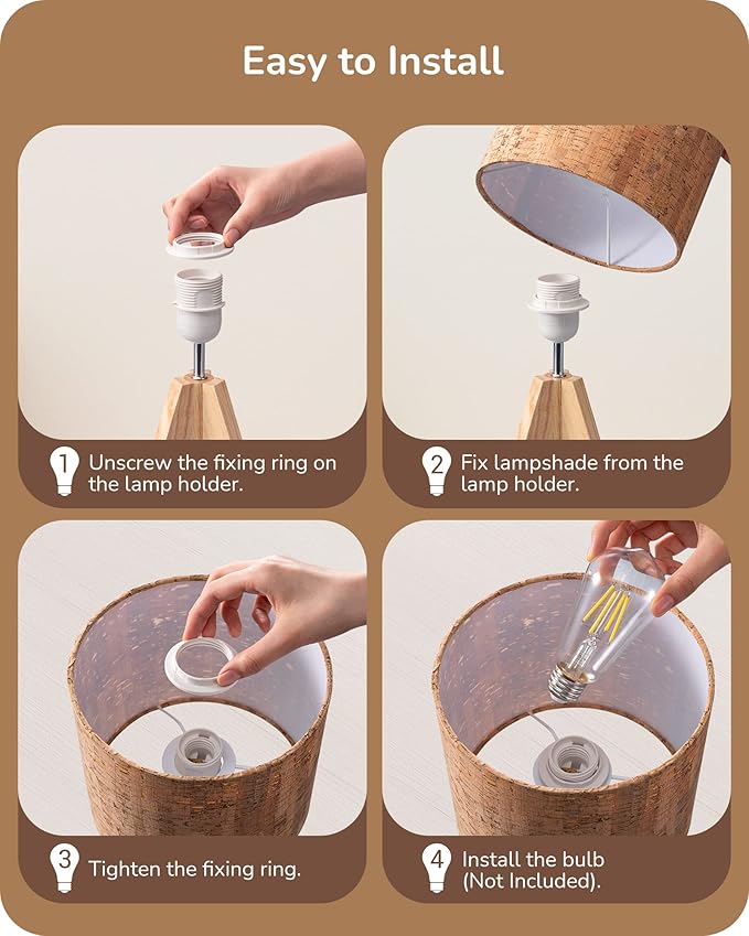 - [Effortless Assembly] Assembling the night lamp is a breeze in a matter of minutes, simply secure the shade tightly with the socket ring, and with the switch on the cord, turning the lamp on and off; the E26 base allows you to choose from various options, including Incandescent, LED, CFL, and Halogen (Bulb not included)
