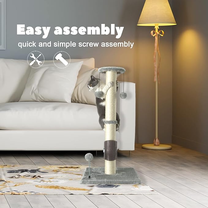 - This cat scratching post has three colors:gray,beige,light gry,brown,always meet your decor expection for matching house furniture .Simple screw-together assembly - instruction and tools included.Easy to assemble and disassemble .
