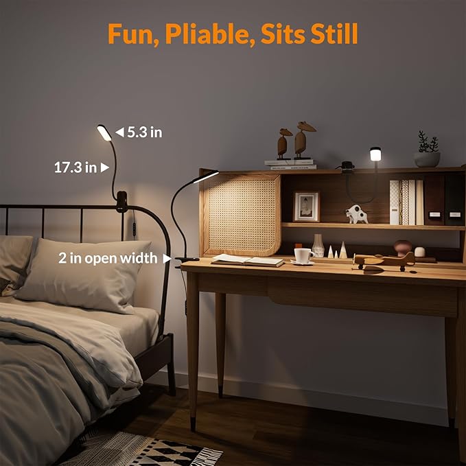 - Preset Night Light: Simply press a button, and the clip light provides you with a private night glow. The clip lamp lets you get up at night without darkness