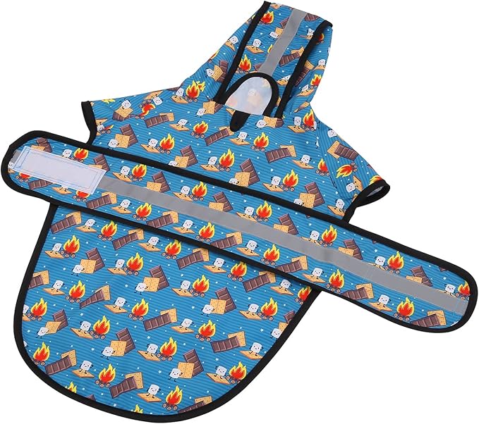 HDE Dog Raincoat Jacket Reflective Adjustable Hooded Pet Poncho Rain Coat with Leash Hole for Small to X-Large Dogs Happy Camper - S