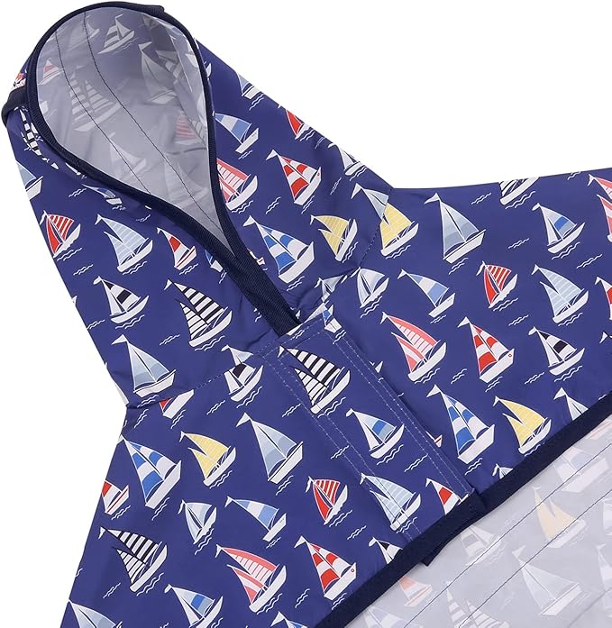 HDE Dog Raincoat Jacket Reflective Adjustable Hooded Pet Poncho Rain Coat with Leash Hole for Small to X-Large Dogs Nautical Boats - S
