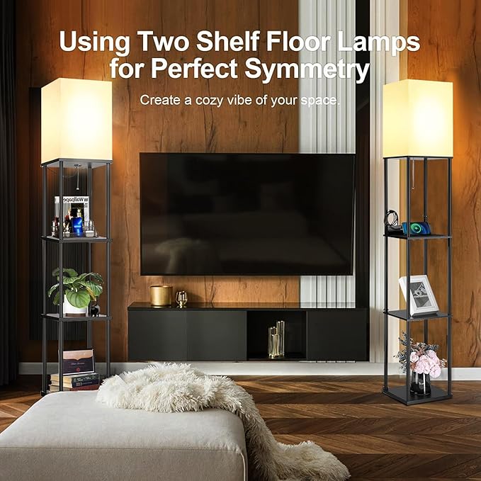- 【2 Packs 3-LAYER ORGANIZER & SPACE SAVER】: This floor lamp comes with 3 level shelves plus cozy lamp on the top. Each board uses high-density fiber material. Its reliable structure supports up to 50lb load. You can put electronic devices, photo frame, plants, books, or other items on it for display. Also, the whole lamp self is heavy enough to avoid falling down.