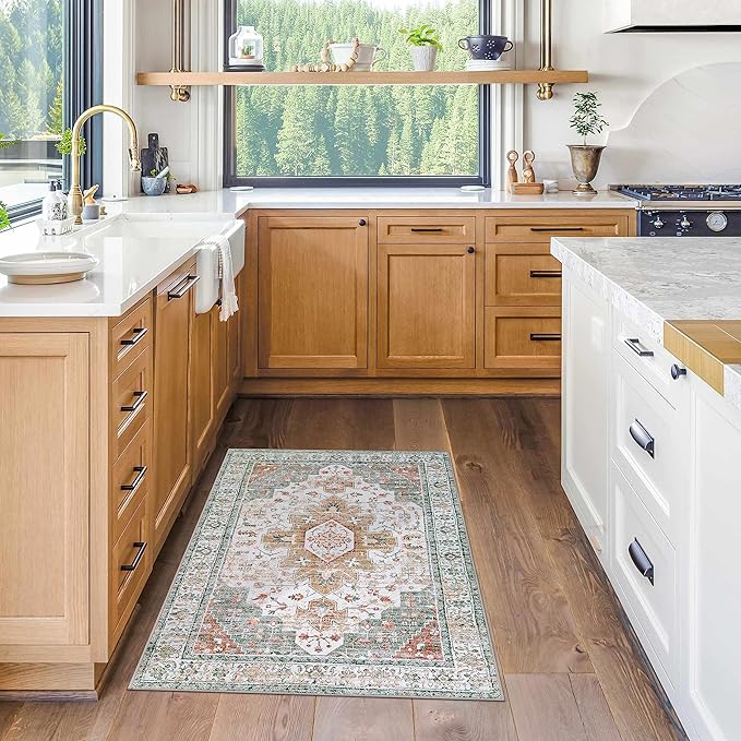 - 【Timeless Vintage Design Rug】 - This washable bedroom rug has design floral medallion patterns including a beige, weak green, cream, old orange color. With purposeful distressing to add vintage appeal to your space. Brings a traditional and timeless with a beautiful printed lived-in design to your home!