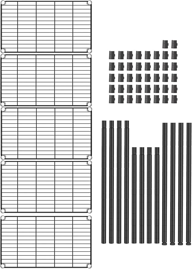 SINGAYE Shelf Wire Shelving Adjustable Storage Shelves Rack Standing Units for Kitchen Closet Laundry Bathroom Organizers Metal Pantry Narrow Mesh Gaps 12" D x 22" W x 59" H Black