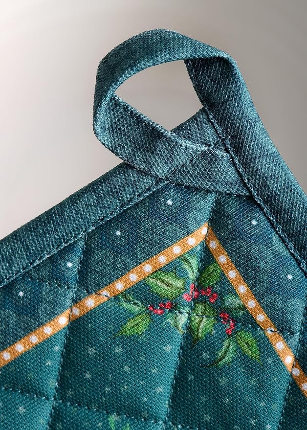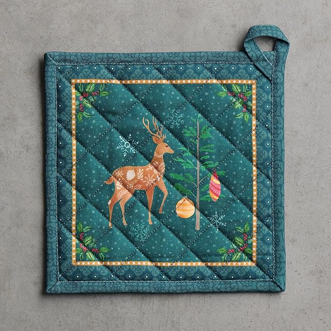 Maison d' Hermine Pot Holders 100% Cotton Heat Resistant Potholders 8" x 8" Hot Pads with Loop for Thanksgiving Christmas Decorations BBQ Cooking Baking Handling Hot Pans (Pack of 1, Hygge Christmas)