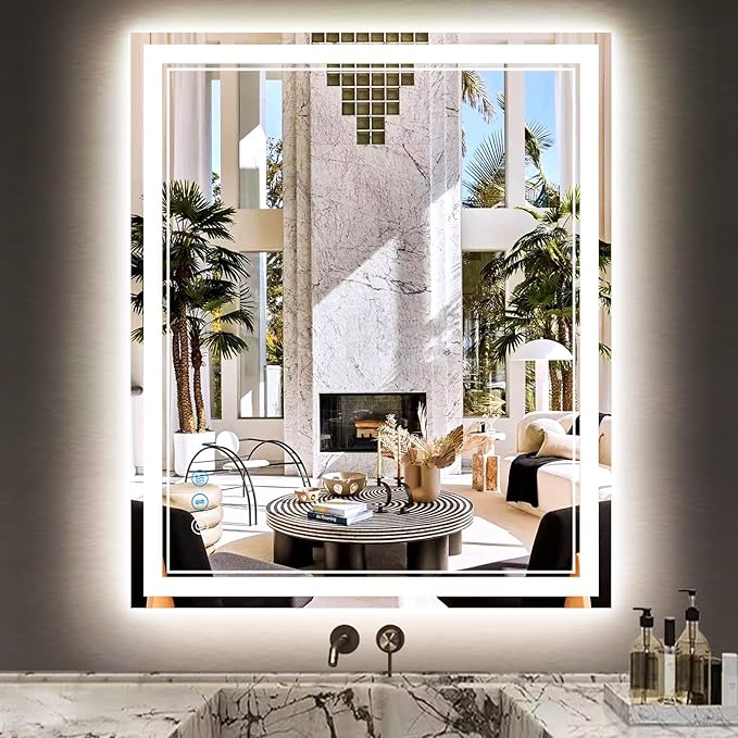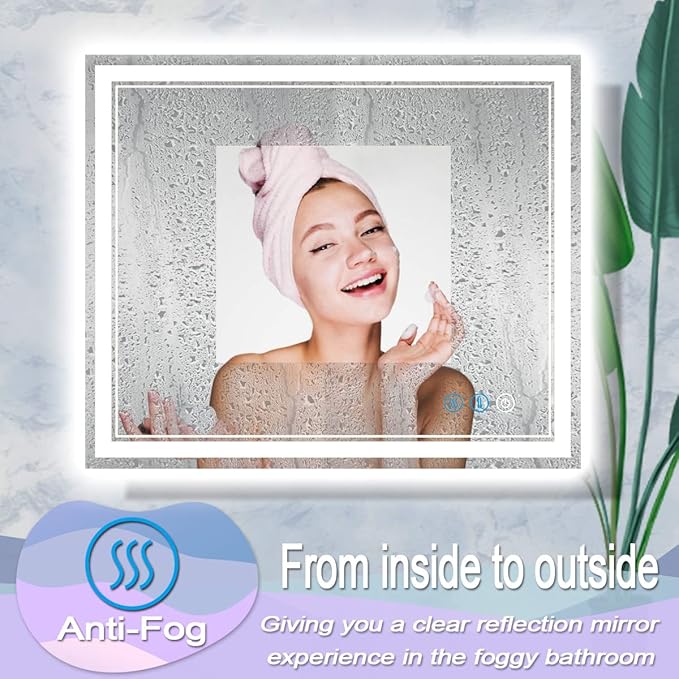 - 😎【TOP QUALITY & LONG ENDURANCE】T5.0MM Copper Free Eco-friendly Glass mirror, which is good for protecting you and environment.Aluminum alloy material back support and Fully enclosed backplate design, that prevent fog from entering the circuit of the mirror.Energy efficient LED light strip,excellent illumination and low consuming energy,efficient LED light strip bring high quality and durable use experience. The mirror has a memory function. When the power is turned off and then restarted, it will return to the previous state of use.