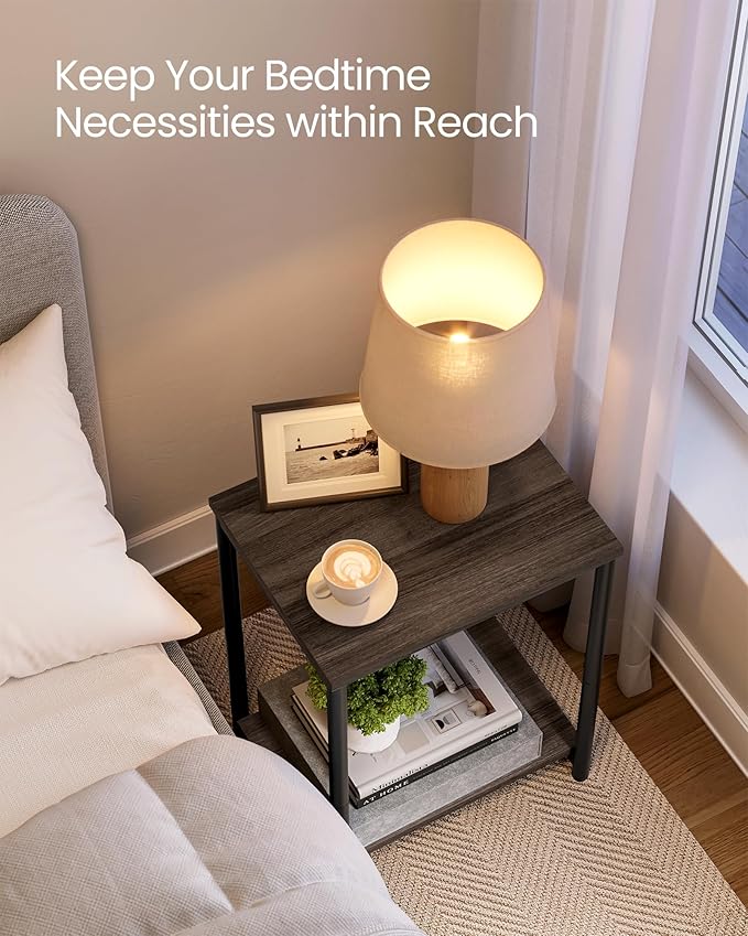 - [Slim yet Spacious] Though with a slim figure of 11.8”D x 15.2”W x 19.7”H, each end table is complete with ample storage. Set a cup of coffee and a flower vase on the top and books on the bottom shelf to give your faves a cozy landing spot