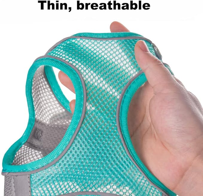 - 【Comfortable and Safe】Our small dog harness made with a soft, breathable air mesh, ultrathin, and super breathable and more comfortable, this lightweight cat harness is perfect for walks in hot summer. The vest-style design disperses the pressure through shoulders and chest, uniform force, no need to worry about the danger of suffocation or choking.Our hook and loop fastener, buckle and D-rings work together protect your pet in three layers of security.