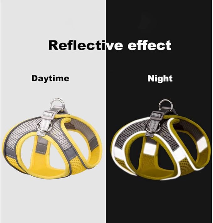 Yellow Puppy Harness and Leash, No-Pull Cat Harness for Easy Walk, Breathable Mesh Reflective Tiny Dog Vest for XXS Xs Small Medium Breed Pet Dogs, XXS